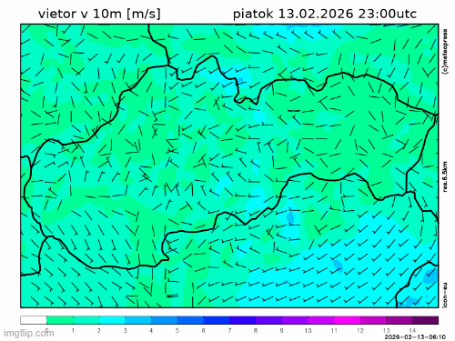 Vietor bude prevažne východný až juhovýchodný s priemernou rýchlosťou do 25 km/h.