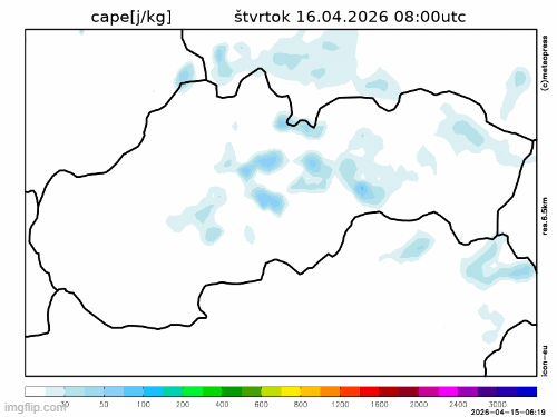 Obr. 5: Predpoveď indexu CAPE podľa modelu ICON.
